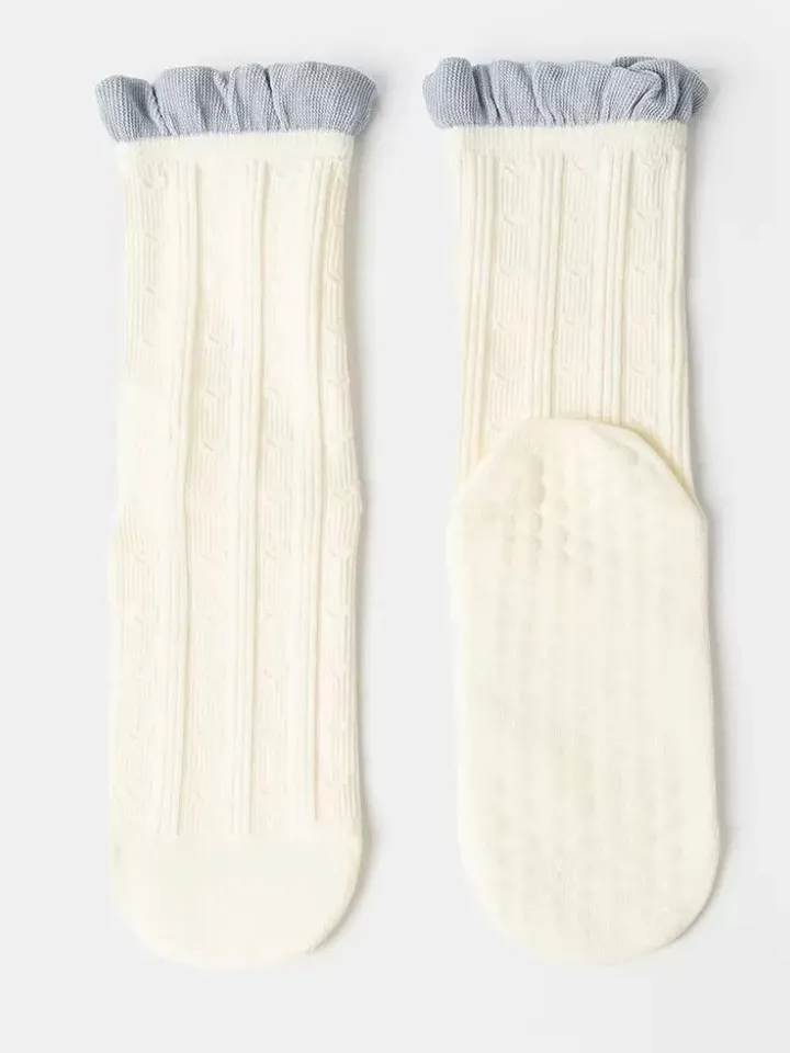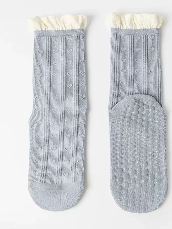 坑條愛心止滑襪